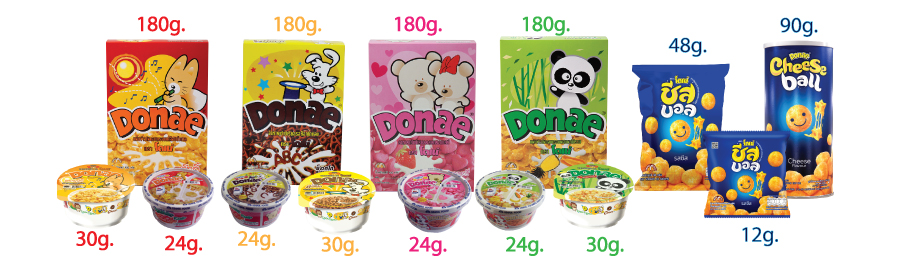 อาหารเช้าโดเน่ อุดมไปด้วยสารอาหารที่มีประโยชน์ พร้อมอร่อยได้หลากหลายรส ด้วยรูปร่างขนมที่แตกต่าง ไม่ว่าจะเป็น ABC รูปหัวใจ และเฟลกที่มาพร้อมกับรสชาติแสนอร่อย ไม่ว่าจะเป็นรสคอร์นเฟลก รสช๊อกโกแลต รสสตรอเบอรี่ รสกล้วย และรสผลไม้รวม อิ่มอร่อยพร้อมนมหรือโยเกิร์ตก็เข้ากัน